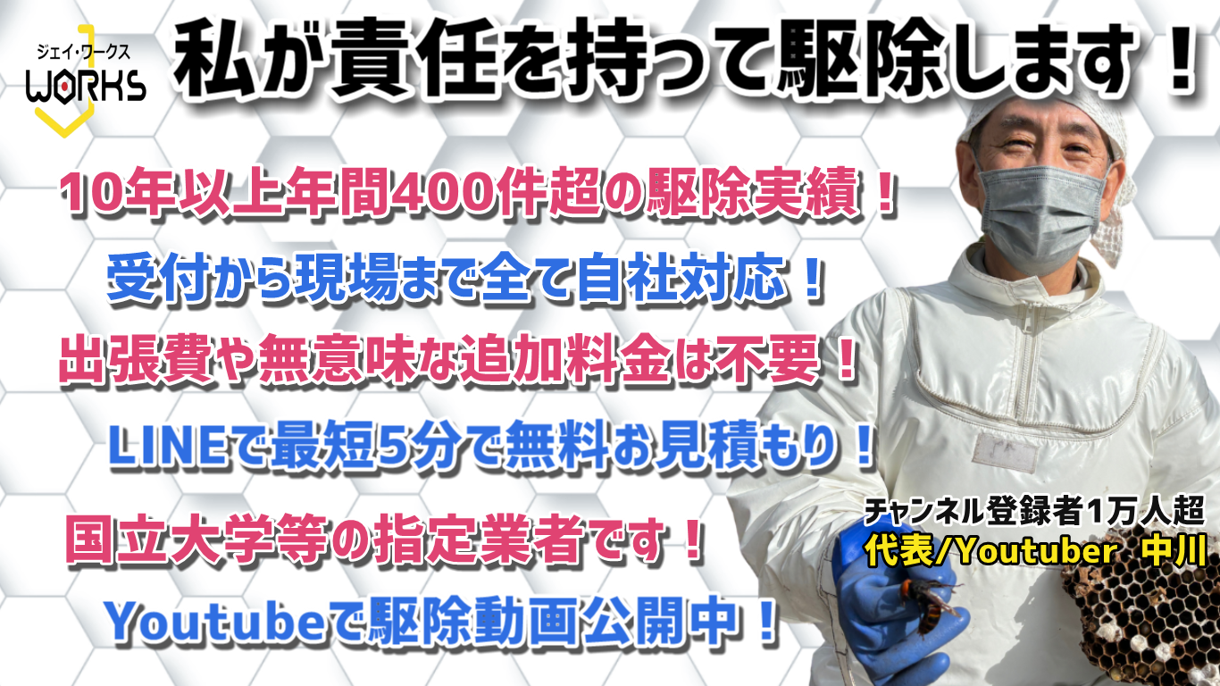 東近江市でアシナガバチ駆除をお考えの方は、ぜひジェイ・ワークスにお任せください